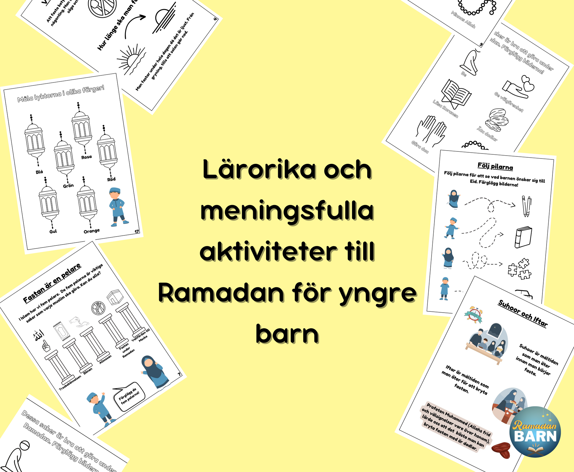 Det här aktivitetshäftet är tänkt att lära ditt barn, i åldern 4 år och äldre, grundläggande kunskap om Ramadan på ett underhållande sätt. Med våra egna barn i åtanke skapade vi detta häfte eftersom vi själva har saknat någonting liknande på svenska.